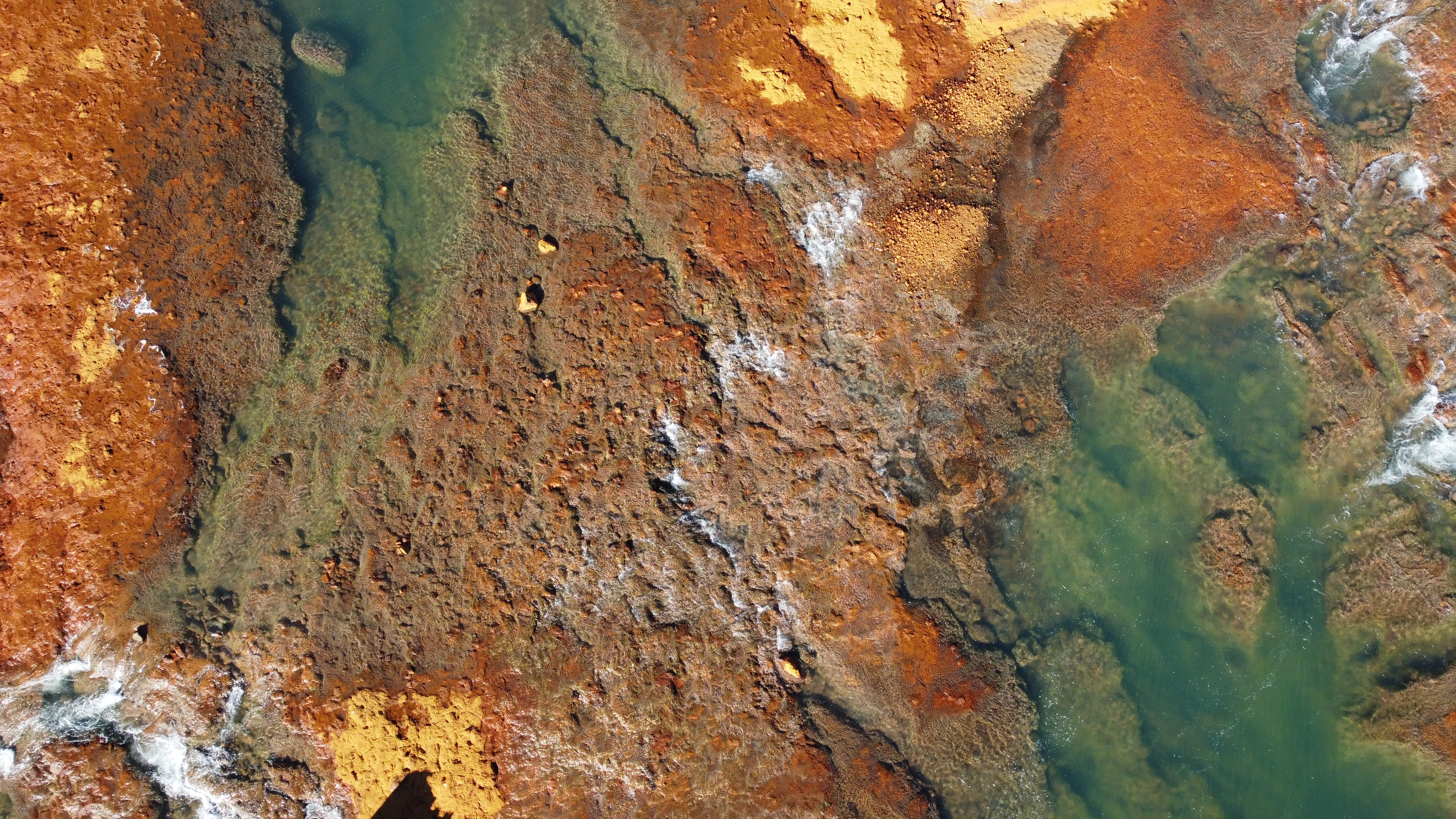Finalmente, volvimos al Salto del Agrio. A pocos kilómetros del pueblo, el río cae en una cascada de más de 60 metros, rodeada de rocas que parecen talladas a mano. La actividad volcánica tiñe todo de colores: minerales como el azufre, el hierro y el cobre se mezclan con la piedra y forman franjas que van del verde al ocre, del amarillo al rojo. Todo cambia según la luz y la estación. Corona la escena un arcoíris que flota sobre la bruma, haciéndola aún más espectacular.